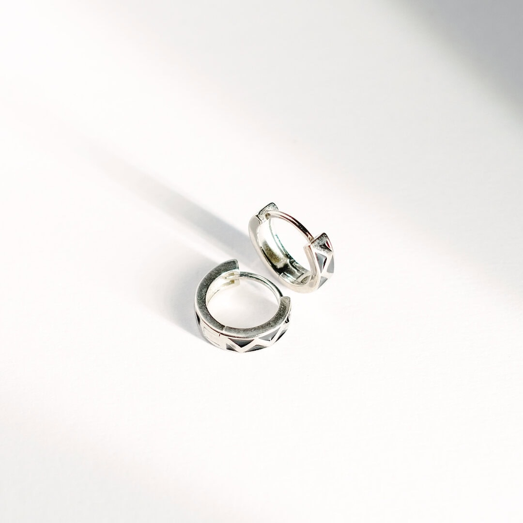Triangle Pattern Sterling Silver Earrings, 925 Silver, Geometric Design, Men’s Fashion Jewellery